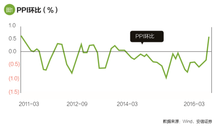 在这些短期驱动因素之外,笔者还特意强调,2015年中以来工业生产者出厂价格指数(PPI)环比底部重新抬升,其所预示的实体经济供应面的调整、制造业领域产能过剩程度的缓解,也为商品暴涨提供了有利的中期背景。回顾往近历史,这同2012年年中至2014年上半年PPI环比底部抬升的情景非常相似。