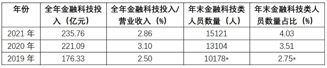 注:表中全年金融科技投入/营业收入为笔者计算