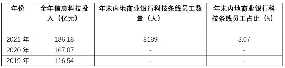 表4:中国银行2019—2021年的信息科技投入及内地科技条线员工数量变化