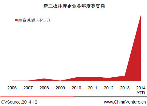 2006年1月23日,中关村(000931,股吧)科技园区非上市股份有限公司进入代办股份系统进行股权转让。此后2006年10月25日,中科软和北京时代正式公告定向增发,这标志着新三板融资大门正式打开,随后新三板市场保持每年1-2家的增发审批通过率,在这一阶段,企业融资难的问题还处于摸索阶段,并没能得到完美解决。