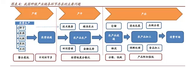 从微观层面,种植产业链涉及产前、产中、产后众多行业,大部分行业产业化程度低且产业链纵向脱节严重,因此无论对于产业还是投资基金,横向整合或纵向延伸皆大有可为。