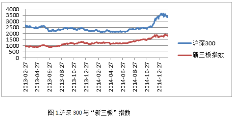 笔者统计了从2013年2月初,全国中小企业股份转让系统成立至2015年2月期间,沪深300指数和wind“新三板”指数的走势图(如下)。