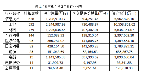 表1.“新三板”挂牌企业行业分布