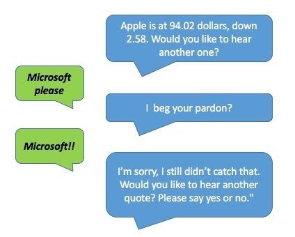 问题就在于,对方真的不是people。如果对方是一个真人客服,你说“微软”,人家肯定能够明白你是想要看微软的股价,但就因为这个回答不在与机器人想要的“是”或“不是”之列,这对话就进入了让人焦躁的“机器人时间”。