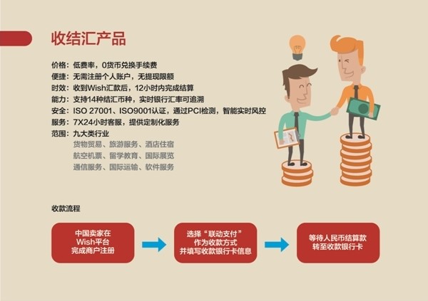 一直以来联动优势都致力于提供便捷、高效、超值的跨境支付服务,为广大卖家带来优质、安全的跨境支付体验。联动优势此次低手续服务费,对Wish平台的卖家而言,只需要提供一个国内的账户及身份信息,即可完成结汇、人民币收款,不需要在联动优势支付平台进行独立注册。在客户服务方面,对于Wish上使用过联动支付的卖家,都会及时收到联动优势发来的短信提示到账的短信。该负责人还透露,联动优势将在今年推出基于Wish卖家的融资服务,使联动优势成为为Wish平台卖家提供多方位服务的最优选择。
