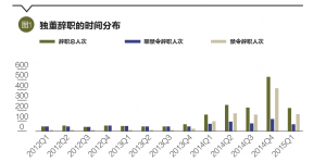 两种观点孰是孰非,一时难以判定。2013年10月,中组部颁布《关于进一步规范党政领导干部在企业兼职(任职)问题的意见》(18号文),给探究这一问题提供了一次难得的“自然实验”。根据意见,现任和离退休党政领导干部将被严格禁止到企业兼职(任职),由此引发了上市公司独立董事的“辞职潮”,如图1所示。不同于以往研究中的独董主动辞职,此次大规模的辞职事件外生于政策变化,有利于避免内生性问题(如独董发现公司经营出现问题,见势不妙而请辞)。更难得的是,这项禁令不但导致官员独董(在政府部门担任领导)必须辞去独董职务,还造成非官员独董(在科研院所和其他事业单位担任领导)也不得不辞去独董职务,由于后者在实权上与前者不可同日而语,这就给我们观察官员独董的官员身份(而不是其他特征)所发挥的独特作用,提供了一个类似“安慰剂”般的对照样本。