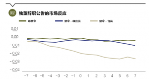 利用事件研究法,通过考察独董辞职公告日前后5天的市场反应,我们发现了比较有趣的现象。