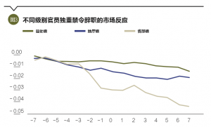 进一步,我们将官员独董的政治级别,划分为省部级、厅局级、县处级以下,发现随着官员级别的提高,公司市值下跌愈加厉害,这意味着市场不但清楚官员独董非是等闲,还能清晰地识别不同级别官员背后的“能量”差异,如图3所示。