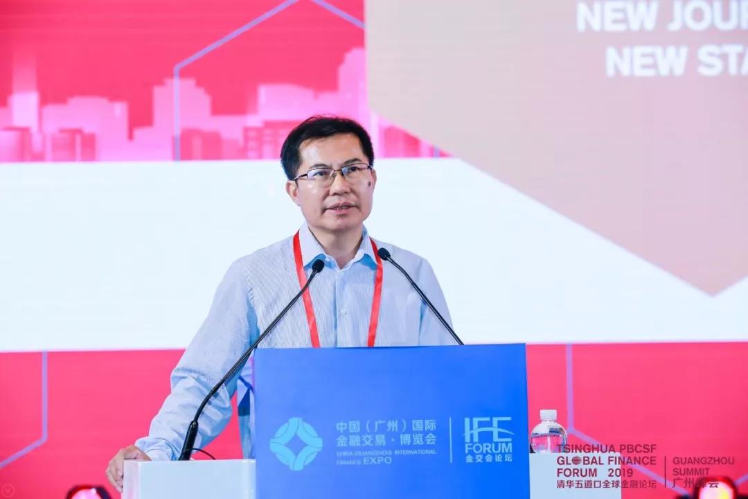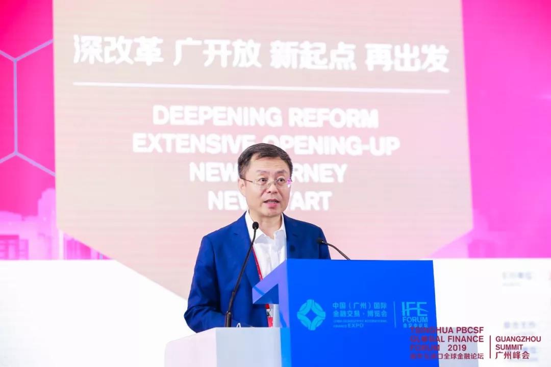 主旨演讲环节,周延礼以《金融助力粤港澳大湾区建设》为题,阐述开放新格局下金融业服务实体经济转型发展新方向。