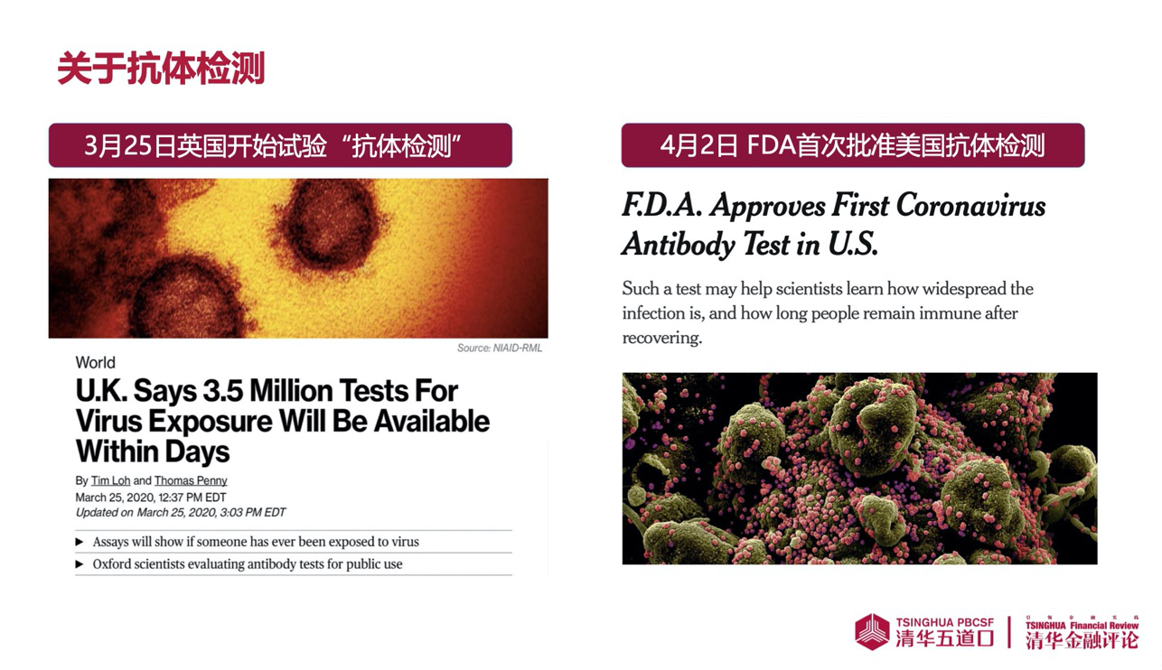 【听众提问】您提到防止中国二次反弹的一个重要的建议,最理想的就是做全民检测。那么如何快速的推广抗体检测?与疫苗推出的速度相比,是否要权衡一下疫苗开发投入与全民检测的投入?哪个会更好一些?