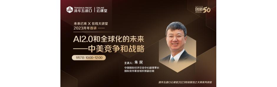 | 活动介绍: | 世界正在加速进入智能时代,人工智能正在迅猛发展,整个物理世界和经济、社会、生活都正在被数字化和智慧化,而这一切,在当前人与人关联密切的现实中,形成了不可忽视的力量。人工智能的演进变化,会如何影响生产、经济与我们每个人的生活?会如何影响全球化,影响大国之间的竞争?我们又将如何进行战略选择? 1月7日,清华五道口云课堂在线大讲堂2023开年首讲,如往年一样邀请到中国国际经济交流中心副理事长、IMF原副总裁朱民老师在线直播,深度分享“AI2.0和全球化的未来—中美竞争和战略”。 |