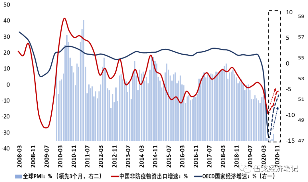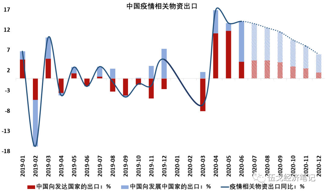 注:图中向发达国家、发展中国家疫情相关物资的出口为对我国出口增速的拉动。