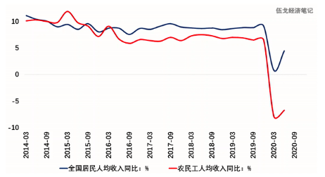 一是从各项民生指标看,经济修复极其不平衡:居民收入整体回暖,但农民工收入十分低迷;企业资金成本总体有所下降,但民企相对国企的融资成本仍在攀升。这似乎折射出疫情这种特殊冲击对农民工密集的服务业和中小企业的不对称影响。