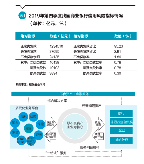 在当前供给侧结构性改革持续推进之际,防控金融风险成为金融领域的重中之重。2018年,商业银行不良贷款余额2.03万亿元,不良贷款率为1.83%;2019年四季度末商业银行不良贷款余额2.41万亿元,不良贷款率为1.86%,其中,关注类贷款余额高达3.77万亿元(图1),这也是未来潜在的不良资产源,商业银行面临不良资产的压力会越来越大。若将村镇银行、农村信用社等纳入统计口径,则整个银行业的不良资产规模将会更高,实际金额将会超过3万亿元。进一步地,若再将非银类金融机构的不良资产也考虑在内,以及2019年底以来受新冠肺炎(COVID-19)疫情冲击,我国金融领域的不良资产规模将会更大。据银保监网站公布的最新数据,2020年一季度商业银行不良贷款余额为26121亿元,较2019年四季度增加了1986亿元;不良贷款率升至1.91%,较2019年四季度增加了0.05个百分点。随着疫情对经济影响的滞后效应显现,我国金融领域的不良资产将会迎来一波峰值。