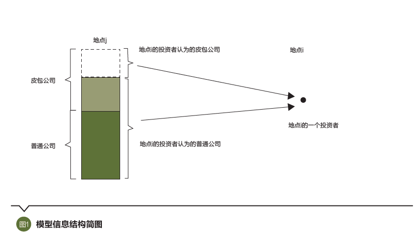 在模型中,我们假定对于每个地点的每家公司,投资者都会收到一个信号:如果一家公司是普通公司,那么信号也会表明其为普通公司;如果这家公司是皮包公司,那么有一定的概率信号会表明其为普通公司,概率的大小即信号的质量与公司和投资者所处的地点均有关。信息结构简图如图1所示。