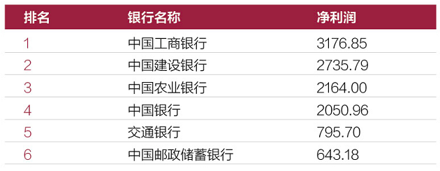 表6:2020年大型商业银行净利润排行榜(单位:亿元)