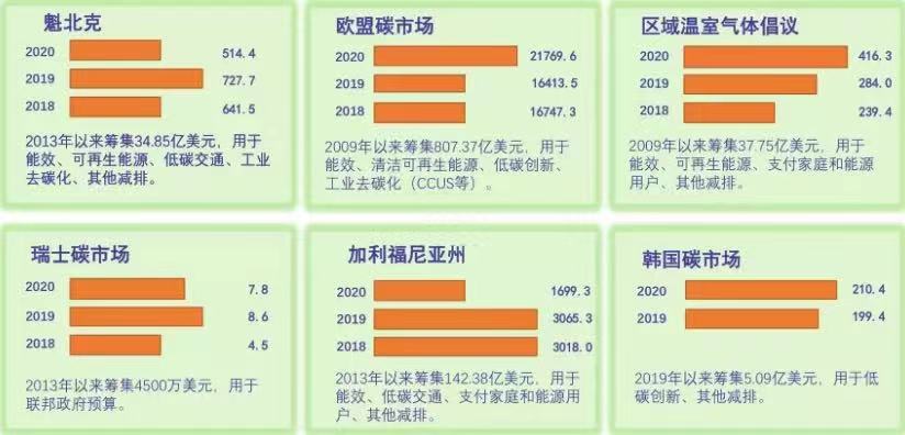 截至目前,已有60多个国家和地区设立了碳市场。尽管全球还未形成统一的碳交易市场,但各地区不同碳市场之间已经开始尝试连接。这些区域GDP总量约占全球的54%,人口约占全球的三分之一,覆盖了16%的温室气体排放,其中各个领先市场的成功经验可以作为我国后续碳市场建设的重要参考。