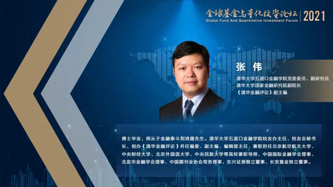清华大学五道口金融学院党委委员、副研究员,清华大学国家金融研究院副院长,《清华金融评论》副主编张伟在“2021全球基金与量化投资论坛”上以“新格局下我国资管行业发展的新趋势”为题发表