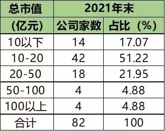 表2:北交所上市公司市值分布情况