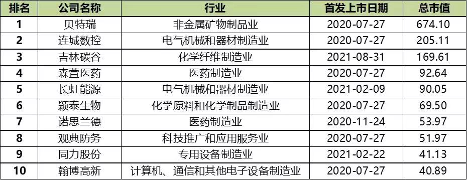 表3:北交所市值最大的10家上市公司