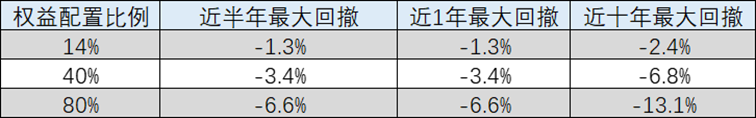 相应权益配置下组合最大回撤情况统计