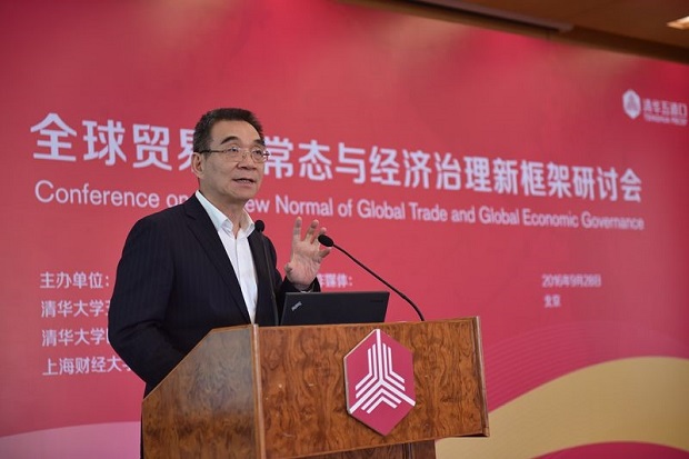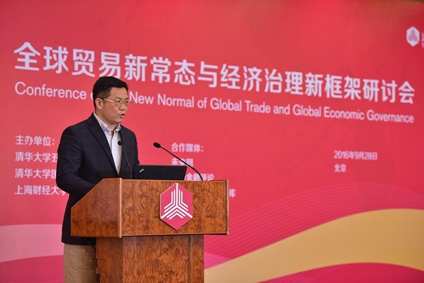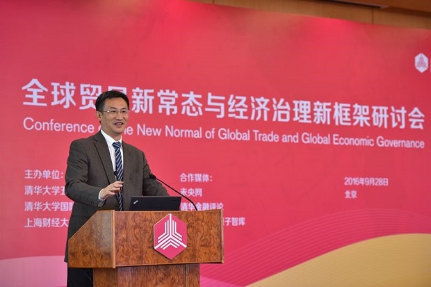 清华大学五道口金融学院访问教授、上海财经大学国际工商管理学院院长、清华大学国际经济研究中心主任鞠建东教授主持并发布了“全球贸易新常态、经济治理新框架与中国开放新战略”课题组研究报告。报告中援引了近年来的贸易数据,表明全球贸易结构发生了深刻变化进入了新常态,“美国核心”的全球贸易旧结构已经被中、美、德三足鼎立的新结构所取代。与此同时,之前亚洲新兴经济体拉动全球贸易所依赖的低成本劳动力,日渐下降的贸易成本和制度成本以及垂直化分工等因素正逐渐丧失优势。鞠建东认为,以华夏文化为纽带构建中国主导的“华夏共同体”,以基础设施互联互通为基础实施“一带一路”战略,形成“一体两翼”的开放新战略,构建G3“三足鼎立”的全球经济治理新框架是实现未来全球贸易新增长的重要思路。