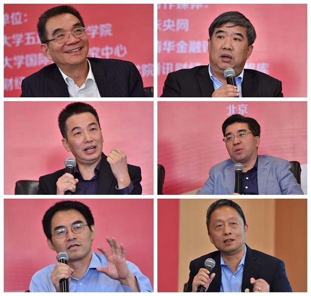 在研讨会的第二个环节,在鞠建东教授的主持下,林毅夫教授,对外经贸大学副校长林桂军教授,中国人民大学商学院学术委员会主任谷克鉴教授,南开大学研究生院副院长、中国APEC 研究院院长盛斌教授,中国社会科学院世经政所所长助理宋泓教授以及清华大学五道口金融学院副院长,紫光讲席教授,清华大学国家金融研究院副院长周皓教授进行了圆桌讨论。