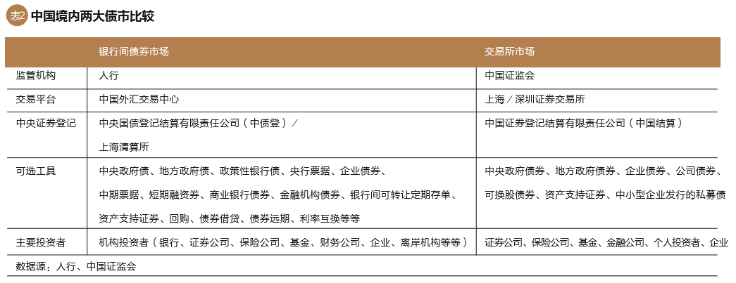 目前境内债市已较大幅度开放但仍有改进空间,例如:现时合格投资者的范围仍限于金融机构;关于债券产品及额度等限制仍然存在等。境内银行间债券市场的准入程序可进一步简化及厘清,以吸引更多外资参与。同时,银行间债券市场和交易所市场这两大交易平台及产品相对分割的情况也需要进一步融合。目前境内的机构投资者主要在银行间债市进行交易,导致逾90%债券交易量都发生在银行间市场。由于债市分割并涉及不同监管机构,导致流通量分散和市场深度有所限制,此外大部分对冲产品只在银行间债券市场交易,给大部分外资参与者带来风险,特别是那些主要通过QFII及RQFII安排进入交易所市场的基金及证券公司。