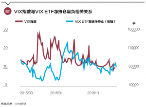 另外,VIX指数ETF的投资标的——VIX期货合约的持仓量,从2016年2月开始大幅攀升,近期该期货合约持仓量更是处于历史高位。2016年全球地缘政治风险集中爆发,欧盟难民危机、英国脱欧公投、特朗普意外当选、意大利修宪公投失败等事件,使投资者恐慌情绪不断升温。为了降低风险事件带来的冲击,投资者会更倾向于使用VIX指数相关衍生品来对冲风险,这是造成这一时期VIX期货持仓量不断攀升的主要原因。而VIX指数相关衍生投资品交易活跃度大幅提高,又在一定程度上削弱了VIX指数的指示性,并可能致使VIX指数的平均水平不断降低。