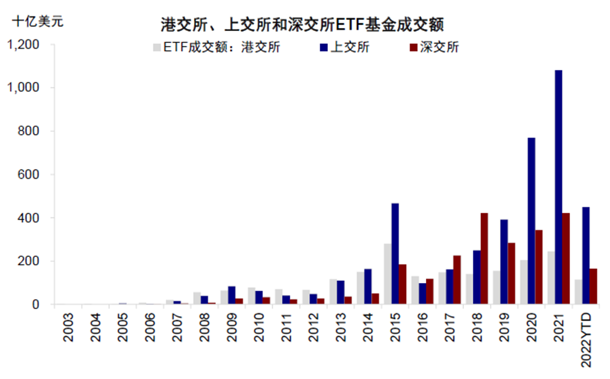近几年,从股票沪深港通、存托凭证、债券、到如今的ETF,两地的互联互通在范围及合作深度方面都在不断深化。2014年底,沪港通和深港通正式启动后,两地交易范围不断扩大,北向和南向资金规模和成交活跃度不断提升。针对ETF的互联互通,2016年两地交易所便达成了明确的纳入共识。