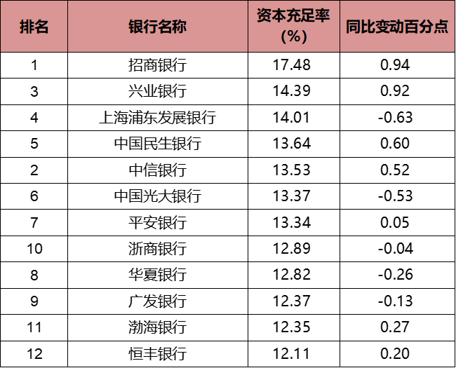 表2:2021年股份行资本充足率及变动情