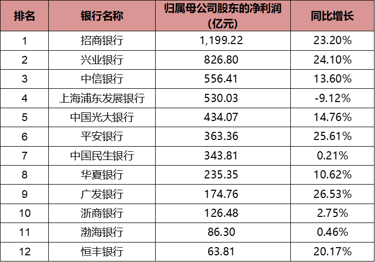 表5:2021年股份行归母净利润及增长情况