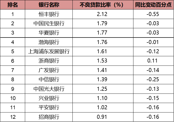 表8:2021年股份行不良贷款率及变动情况