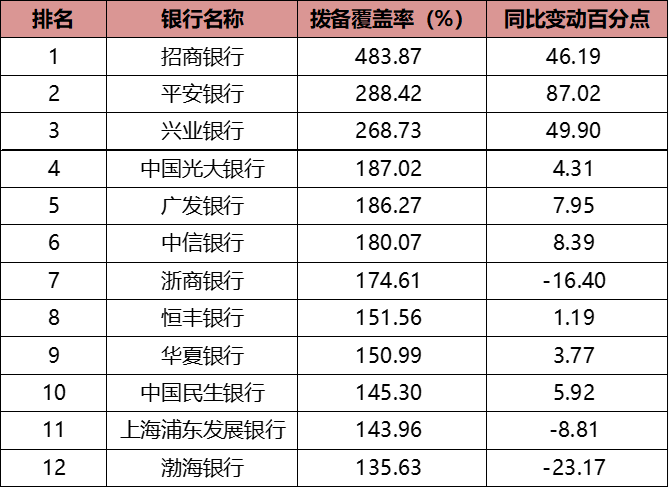 表9:2021年股份行拨备覆盖率及变动情况